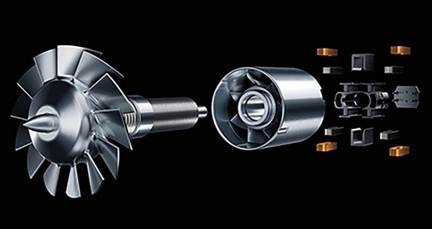 Важнейшим элементом прибора является дигитальный мотор Dyson V9, расположенный в ручке, что обеспечивает более равномерное распределение веса и снижает нагрузку на кисть и запястье в процессе сушки.