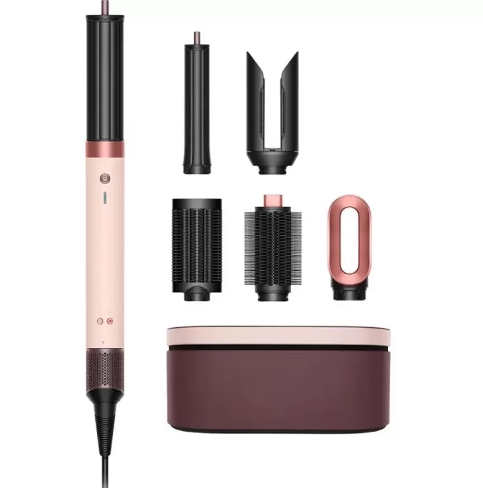 - Dyson Airwrap Complete — многофункциональный инструмент, включающий набор насадок для локонов, гладких укладок и объема.